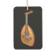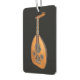 This air freshener features the amazing oud. It is a pear-shaped stringed musical instrument commonly used in North African and Middle Eastern music. The modern oud and the European lute are both quite similar. The oud can be identified by its lack of frets and smaller neck. In this still life, the oud is resting on an ornate table and leaning against a rustic brick wall. It is decorated with complex, intricate designs in black, silver and white which contrast beautifully with the gorgeous golden wood.