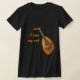 This shirt features the amazing oud. It is a pear-shaped stringed musical instrument commonly used in North African and Middle Eastern music. The modern oud and the European lute are both quite similar. The oud can be identified by its lack of frets and smaller neck. It is decorated with complex, intricate designs in black, silver and white which contrast beautifully with the gorgeous golden wood. The text reads: I love my oud. It can be customised or removed.