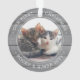 Celebrate the simple joys of your newest furry family members with a custom 2 photo grey faux wood round acrylic ornament. Kitten pictures and all text on this template are simple to personalise and can be different or the same on front and back. If preferred, change "Our First Christmas" to any wording or to create a memorial ornament. It can be customised to include other pets, such as dogs, horses, bunnies, birds or hamsters. (IMAGE & TEXT DESIGN TIPS: 1) To adjust position of wording, add spaces at beginning or end. 2) To centre the photo exactly how you want, crop it into a square shape before uploading to the Zazzle website.) The modern farmhouse style design features a rustic grey faux wood border, minimalist typewriter typography, the pets' names & year, and two pictures of your choice. This unique cat lover keepsake adds an elegant touch to Xmas home decorations. Merry Christmas! Example photo on back is by Alina Sofia on Unsplash.