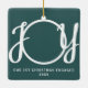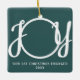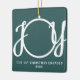 This keepsake First Christmas Engaged photo ornament is decorated with the word JOY in stylish script typography on a green background. Easily customisable.