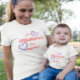 This Mother's Day will be one to remember with a new little one in the family. "Our 1st Mother's Day together" in soft pastels with hearts is picture perfect for all those memorable moments. A matching baby bodysuit is available to add to the bonding experience. Great for a gift and a keepsake.