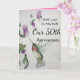 Celebrate your 50th anniversary with a lovely hummingbird watercolor card for your wife. The sweet bird and garden flowers were designed with soft colours of green, cream and pink. The stylish and fashionable card is full ol love, joy and happy wishes.