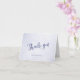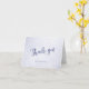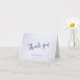 This simply designed typographic style wedding or any occasion thank you card features the text "Thank you" in a whimsical dark blue calligraphy style script on a mottled blue and white background - your custom text is matching dark blue - you can delete the "Our adventure begins" graphic from the inside of the card for a simple any time thank you card - by katz_d_zynes