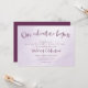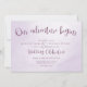 This simply designed typographic style wedding invitation features the phrase "Our adventure begins" in a whimsical calligraphy style script in plum with coordinating script elements on a mottled plum and white background - your custom text and reverse side of invitation are matching plum - by katz_d_zynes