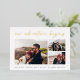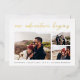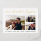 A modern and exciting save the date card for the adventure-minded couple, this clean and simple design features three horizontal or landscape orientated photos in a grid collage layout, with "our adventure begins" above in gold foil hand lettered script. Personalise with your announcement, names, and additional details along the bottom, and add more (like your wedding website) to the back.