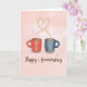 Celebrating your anniversary is a special thing. This card shows two mugs of steaming coffee, each with a different colour of coffee. When you two make the perfect blend, let your loved one know as you wish happy anniversary! Shades of orange and blue grey make a very modern colour combination and font with a coffee pun on the inside for a humourous twist.