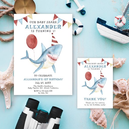 UNDER THE SEA. Our baby shark. A cute the smiling shark in party hat themed 1st Birthday Day.