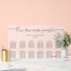 Welcome your guests and let them find their seats on this elegant acrylic sign with the beautiful "Our favourite people" phrase in modern handwritten calligraphy. Use our 12 tables to add your guest names, and if needed, you can erase tables and even re-adjust the table's positions by selecting "Edit using Design Tool" with the button located at the end of the template text boxes, you can also increase the font size or reduce it to fit your amount of tables best. 12" x 18" is simply our default size, you can choose from several size options. "IMPORTANT NOTE: sign in a high-quality acrylic sheet with the text printed in black and a frosted faux look behind, providing a clear view of the text in all spaces, and giving you the frosted appeal for a fraction of the cost! Small sizes come with a wood block to stand, bigger sizes need an easel or surface to stand so they won't warp. This same sign design is also available in poster print and in foam board options, which you can find in our collection". Part of our "Modern Elegant Wedding and Events Signage" collection with a variety of coordinating products available. Dimensions of sign from demo photo with stand: 24" x 36"