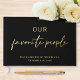 Chic black wedding guest book that features real gold, silver or rose gold foil, "Our Favourite People" in a mix of simple typography and a modern script, your names in elegant classic serif typography and your wedding date. Customise your title on the spine and add a favourite engagement photo on the back (or delete).