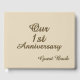 Our 1st Anniversary Guest Book Elegant Gold Look Typography First Wedding Anniversary or First Corporate Anniversary Party Guest Book, you can change the beige background colour