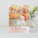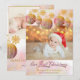 Our First Christmas 2-in-1 birth announcement and holiday cards. Personalised with 3 of your favourite baby photos, baby's name, date of birth, your Christmas message, sign off and names. The design features holiday ornaments, snowflakes and vintage lettering for "our first Christmas". It has a colour palette of gold, soft burgundy and a kind of irridescent look with watercolor mist.