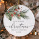 Customisable Holiday ornament. Edit the wording to celebrate your first Christmas together. Holiday greens with red berries watercolor illustration.