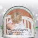 Our first Christmas as a family of four snow globe featuring custom photo and year. Photo template via Pixabay licensed under CC0 and must be replaced with your own photo