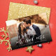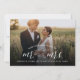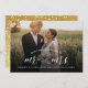 This modern minimalist holiday/christmas wedding announcement card features the words 'Our First Christmas as Mr. and Mrs.' in trendy calligraphy script and simple sans serif mix typography overlaying a full bleed photo.