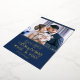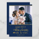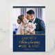 Celebrate your first Christmas married as Mr. and Mrs. with this cute holiday card featuring a customisable photo template and a lovely caption in real gold foil trendy fonts over a festive blue background.