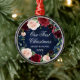 Our First Christmas Burgundy Blue Floral Wreath Metal Tree Decoration