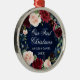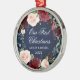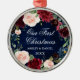 Our First Christmas Watercolor Burgundy Marsala Blue Floral Wreath Round Ornament