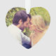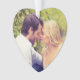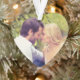 Elegant heart-shaped holiday ornament for a couple's first Christmas together features a photo on the front and custom text with snowflake design accent on the back. Rose gold / blush pink background color and fonts can be customized.