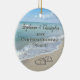 Celebrate your engagement while planning a beach wedding or honeymoon with this keepsake engagement ornament. Interlocking beach wedding hearts drawn in the sand makes an elegant tropical ocean coastal nautical theme wedding, matching set of items. Pretty turquoise water waves crashing on the shore and pastel blue sky.