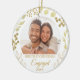 This elegant Engagement Christmas Ornament is decorated with gold foliage on a white background.