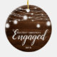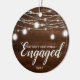 Our First Christmas Engaged. Holiday Custom Ceramic Ornament . This design features a rustic wood background with mason jar string lights.
