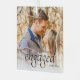 An elegant keepsake of your engagement year, this beautiful glass ornament displays a favourite photo with "our first Christmas engaged" overlaid in black lettering accented with snowflakes. Personalise with your initials and the year.