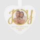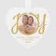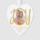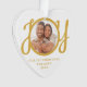 This keepsake heart-shaped First Christmas Engaged photo ornament is decorated with the word JOY in stylish gold script typography. Easily customisable.