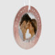 Beautiful and magical engagement keepsake photo ornament to commemorate your first Christmas engaged. The design features a faux rose gold background "Our First Christmas" arched around the ornament. "Engaged" is displayed in an elegant script. Customise with two photos, one on the front and one on the back.