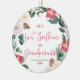 Can't figure out what to give grandma and grandpa for their first Christmas as grandparents? Why not? Give an awesome gift and celebrate their promotion and your newborn at the same time with this Poinsettia Floral Wreath Ornament! It features a beautiful arrangement mixed with pine cones and florals and is complemented with a beautiful handwritten typography. This ornament makes it a festive addition to your Christmas tree. You can personalise the ornament to the way you want it. Please note: You cannot edit the floral wreath and "first Christmas". You can change the colour of "First Christmas" though.