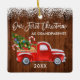 Modern Brush Script Our First Christmas as Grandparents Ornament includes Watercolor Vintage Red Truck with Christmas Tree, Snow, Christmas Presents and Candy Canes. Rustic Country Wood Print.