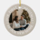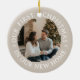 Celebrate the move with a cosy keepsake. This neutral greige round ceramic ornament features arched “OUR FIRST CHRISTMAS” text with “IN OUR NEW HOME” below, framing a soft brush-edge photo window. Split year numerals sit at the sides for a balanced, clean layout. The warm tone and crisp white lettering complement living-room snapshots, mantle displays, and gift boxes. Drop in your favourite photo and set the year to create a chic housewarming memento you’ll hang every December.