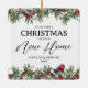 Elegant traditional festive themed new home ornament featuring gorgeous watercolor botancial christmas foliage, a robin, snowdrops, the saying "our first christmas in our new home", your names, and the year.