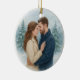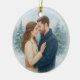 Celebrate love and new beginnings with this personalised "Our First Christmas Married" ornament. Featuring a custom couple photo on the front and editable text with your wedding date on the back, this round ceramic ornament makes the perfect keepsake for newlyweds. Designed with a timeless watercolor winter wreath, it adds a touch of festive elegance to your Christmas tree. A thoughtful gift for weddings, engagements, or first Christmas as husband and wife.