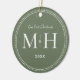 Our First Christmas Newlyweds Monogram Sage Green Ceramic Tree Decoration