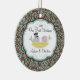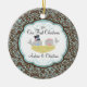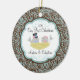 Our unique dated custom Our First Christmas Ornament features a cute bride & groom bird couple sitting in a birds nest set on a blue & brown floral swirl damask background! Personalise with your information and date and you're all set to go! Wonderful dated keepsake gift for a couples first christmas and a great addition to you christmas ornament collection.