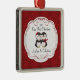 Our unique dated custom Our First Christmas Ornament features a cute penguin in love couple set on a red damask background! Personalise with your information and date and you're all set to go! Wonderful dated keepsake gift for a couples first christmas and a great addition to you christmas ornament collection.