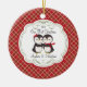 Our unique dated custom Our First Christmas Ornament features a cute penguin in love couple set on a holiday red plaid background! Personalise with your information and date and you're all set to go! Wonderful dated keepsake gift for a couples first christmas and a great addition to you christmas ornament collection.