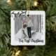 On the back, you can feature a second photo with the same greenery accent for a cohesive design. Below the image, there’s space to include your wedding date or a second line of custom text. A timeless keepsake for newlyweds or couples, this ornament adds warmth and meaning to your holiday season.