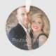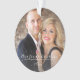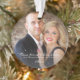Our First Christmas Script Wedding Photo Ornament. Moden holiday ornament for newlyweds. Our first Christmas quote, wedding year and the names on the backside are in the modern script - personalise with your information. Insert your photo into the template.