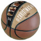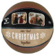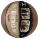 Our First Christmas Together 2 Photos Basketball. Rustic personalized basketball featuring 2 photos, modern and trendy typography saying Our first Christmas together, 3 white hearts, names and year on a beige rustic background. Add your names, 2 photos and year and make a lovely gift for your boyfriend who loves sports.