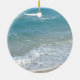 Remember a beach wedding or honeymoon with this keepsake wedding ornament. First Christmas together with two interlocking beach wedding hearts drawn in the sand makes an elegant tropical ocean coastal nautical theme wedding, matching set of items. Pretty turquoise water waves crashing on the shore and pastel blue sky.
