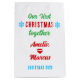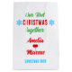 Our First Christmas Together Snowflakes Gift Bag. Personalised big bag featuring modern and trendy typography saying Our first Christmas together, 3 snowflakes and names. Add your names and make a lovely gift for a boyfriend or a girlfriend.