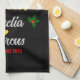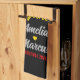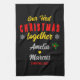 Our First Christmas Together Snowflakes kitchen towel. Personalised kitchen towel featuring modern and trendy typography saying Our first Christmas together, snowflakes, heart and names. Add your names and make a lovely gift for a boyfriend or a girlfriend.