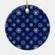 Our First Christmas Wedding Photo Blue Ornament with Snowflakes back.