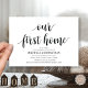 Our first home, housewarming party invitation card. Planning a housewarming party in celebrating your new home with your family and friends? Invite your guests with this beautiful and perfect Rustic calligraphy themed housewarming party invitation card. Add your details in matching black font / lettering.