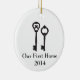 This design features a couple of vintage keys. Personalise this ornament on both sides with your information.