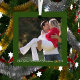 Your photo framed in green on the front with Our First Married Christmas text and the year. The back has your names and wedding date framed with mistletoe. Photo Credit: Photography © Storytree Studios, Stanford, CA