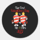Our First Valentines Day As Mr And Mrs Engaged Cou Classic Round Sticker
