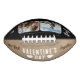 Our First Valentine's Day Together 2 Photos Football. Rustic personalised football featuring 2 photos, modern and trendy typography saying Our first Valentine's Day together, 3 white hearts, names and year on a rustic beige background. Add your names, 2 photos and year and make a lovely gift for your boyfriend who loves sports.