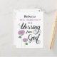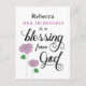 Express your feelings about your friendship with this custom front calligraphy typography design featuring the message, "CUSTOM NAME HERE our friendship is a blessing from God." Design appears in black letters on white background and is accented by a beautiful purple flower in lower left corner of design.